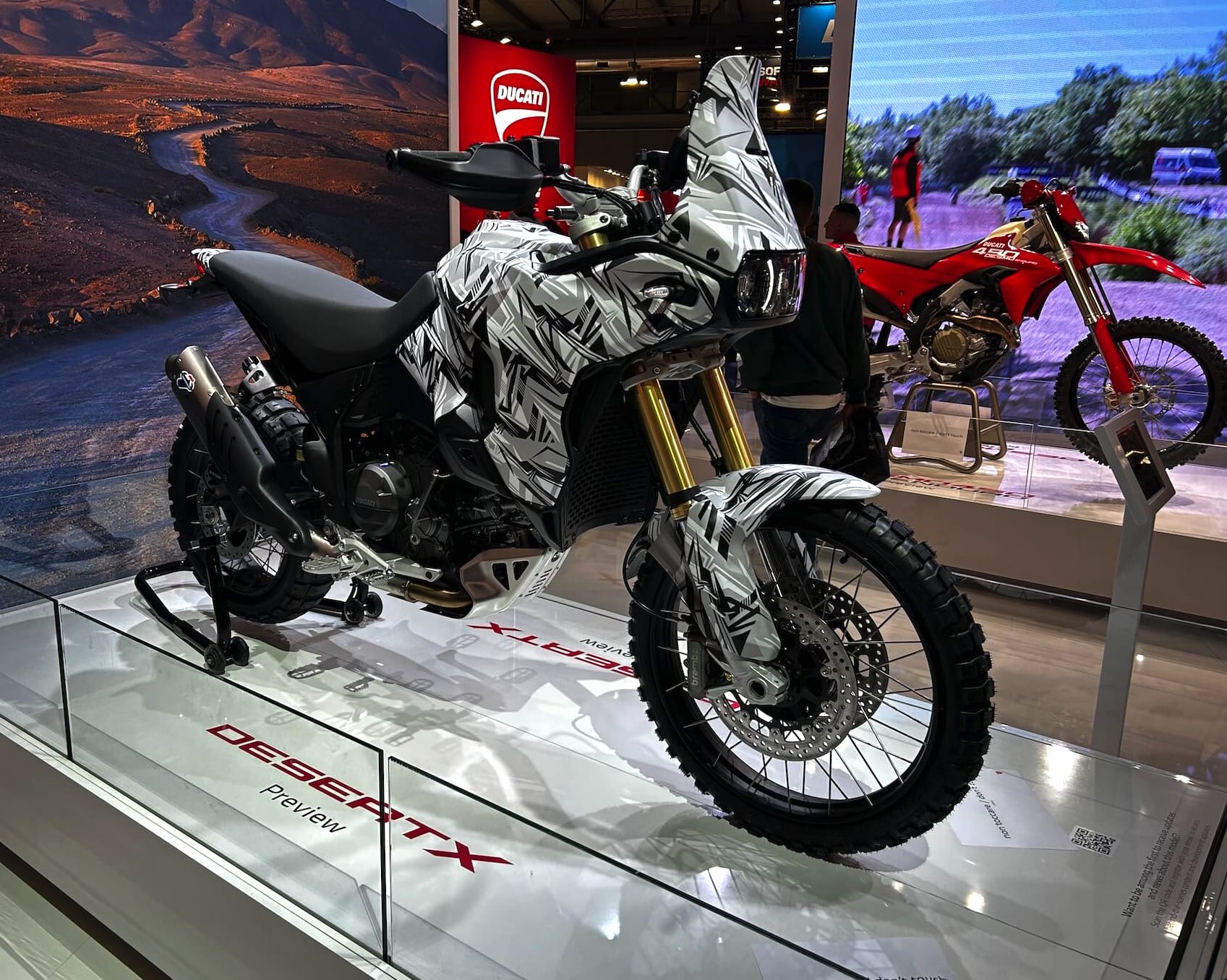 Letos je na sejmu EICMA 2025, Ducati predstavlja novi DesertX. Končne barvne možnosti še niso znane, za prototip, ki je na ogled, pa je bilo razkritih le nekaj podrobnosti. Prototip je opremljen s kamuflažno barvo.