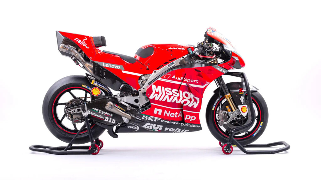 Gre za čisto pravi Ducati Desmosedici GP19, motocikel, s katerim je italijanski dirkač končal sezono na drugem mestu takoj za Marcom Marquezom.