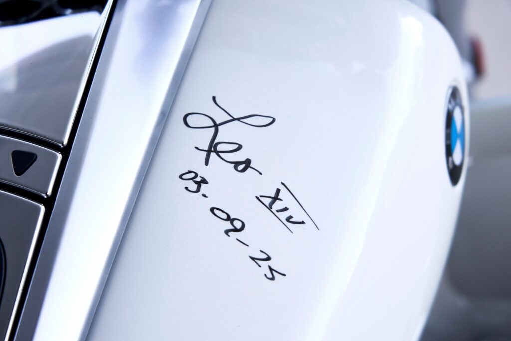 V sredo, 3. septembra 2025, sta Markus Flasch, izvršni direktor BMW Motorrad, in Michael Sommer, vodja BMW Motorrad Germany, po splošni avdienci v Vatikanu osebno predala motocikel papežu v blagoslov in podpis.