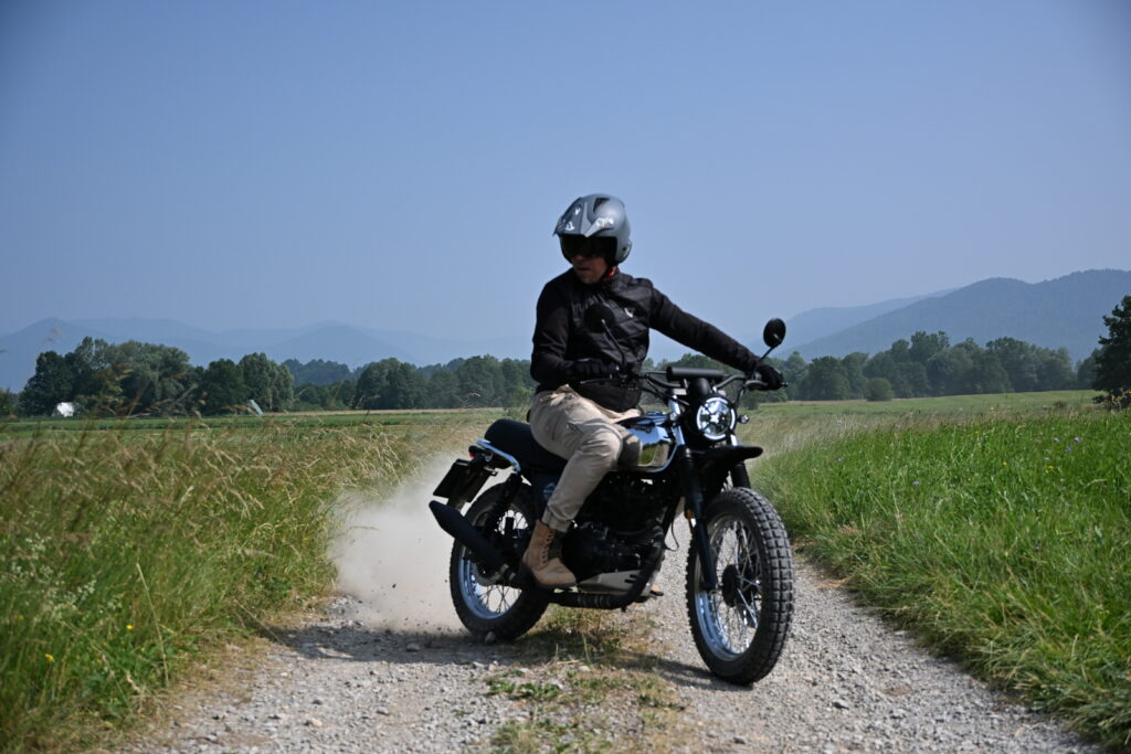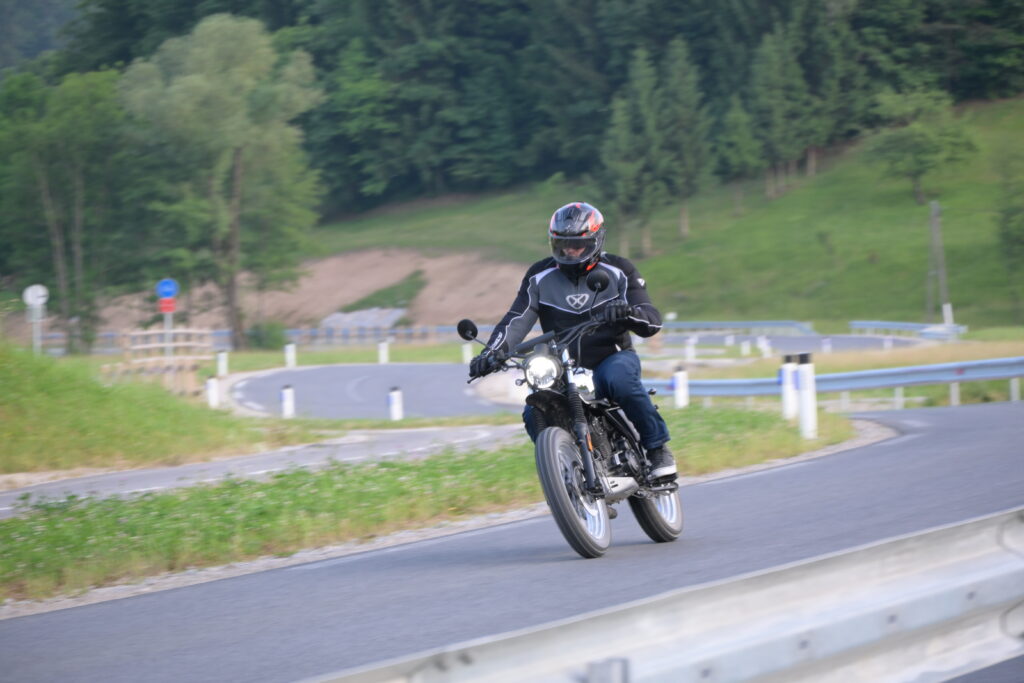 Pri vsem tem želim izpostaviti odlično ceno, solidno izdelavo in preizkušen Suzukijev enovaljni, zračno hlajeni motor. Izdelava je dobra in na dovolj dobrem nivoju, da vse skupaj ne izgleda ceneno ampak povsem v slogu koncepta motocikla, ki izhaja iz neo retro zgodbe v kateri ta avstrijska znamka ponuja tudi drugačne izvedbe, od 125, 250, 500 in vse do 1200 kubičnih motorjev.